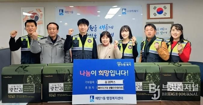 브릿지저널 김경미 기자 | 영통구 매탄1동 행정복지센터는 지난 11일 설 명절을 맞이해 매탄지구대 생활안전협의회가 김 선물세트 20개를 후원했다고 밝혔다. 이번 후원 물품은 관내 저소득 취약계층과 돌봄이 필요한 가정에 전달할 예정이다.
