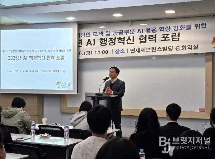 브릿지저널 김경미 기자 | 서울 성동구는 한국지능정보사회진흥원(NIA)과 공동으로 '2026년 AI 행정혁신 협력 포럼'을 지난 2월 6일 연세세브란스빌딩 중회의실에서 개최했다.