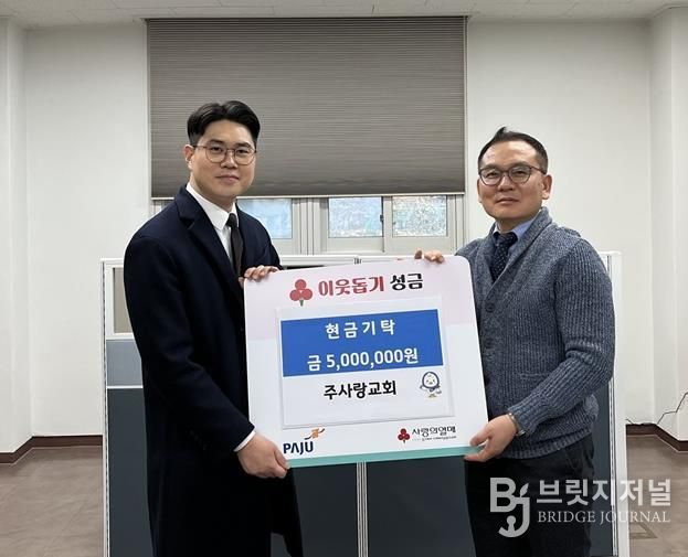 브릿지저널 김경미 기자 | 설 명절을 앞둔 지난 10일, 금촌2동에 위치한 주사랑교회가 지역 내 취약계층을 위한 성금 500만 원을 금촌2동에 전달했다.