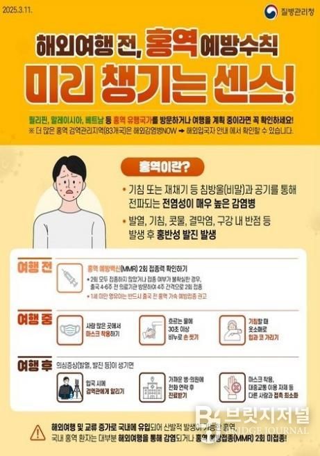 우리나라처럼 평소 홍역 발생이 거의 없는 국가에서도 해외 유입 사례로 인해 지역사회 전파 위험이 커지고 있어 여행 전 예방접종의 중요성이 더욱 강조되고 있다.