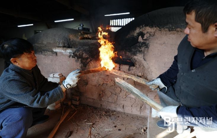 브릿지저널 김경미 기자 | 제54회 강진청자축제가 오는 21일 개막을 앞두고 있는 가운데 12일 전남 강진군 대구면 고려청자박물관 제2호 가마에서 도공들이 전통 방식을 그대로 재현하며 소나무 장작을 이용해 불을 지피고 있다.