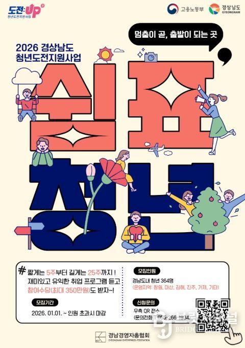 브릿지저널 김경미 기자 | 경상남도는 2026년 경상남도 청년일자리 사업 참여 청년과 기업을 2월 9일부터 예산 소진 시까지 모집한다고 밝혔다.