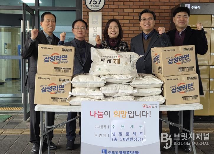 브릿지저널 김경미 기자 | 수원시 장안구 연무동 행정복지센터는 11일, 민족 고유의 명절 설을 앞두고 수원세관과 한국관세사회 수원지부로부터 지역 내 어려운 이웃을 위한 따뜻한 후원의 손길이 이어졌다고 밝혔다.