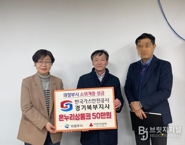 브릿지저널 김경미 기자 | 의정부시는 2월 11일 한국가스안전공사 경기북부지사가 장암종합사회복지관에 온누리상품권(1만 원권 50매)을 지정 기탁하며 ‘100일간 사랑릴레이 배턴 잇기’에 동참했다고 밝혔다.