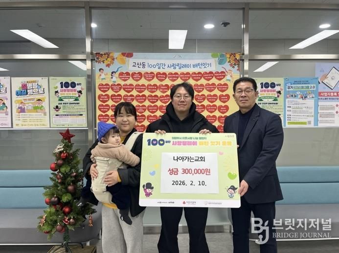 브릿지저널 김경미 기자 | 의정부시 고산동주민센터는 2월 10일 고산동 소재 나아가는교회가 저소득층 지원을 위해 성금 30만 원을 기탁했다고 밝혔다.