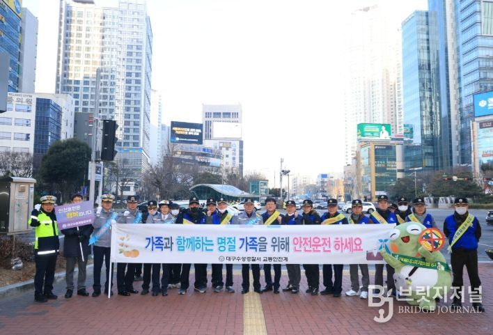 브릿지저널 김진석 기자 | 대구 수성구는 설 명절을 앞두고 12일 범어네거리 일대에서 수성경찰서(서장 최미섭)와 함께 ‘2026 설맞이 교통안전 합동 캠페인’을 실시했다고 밝혔다.