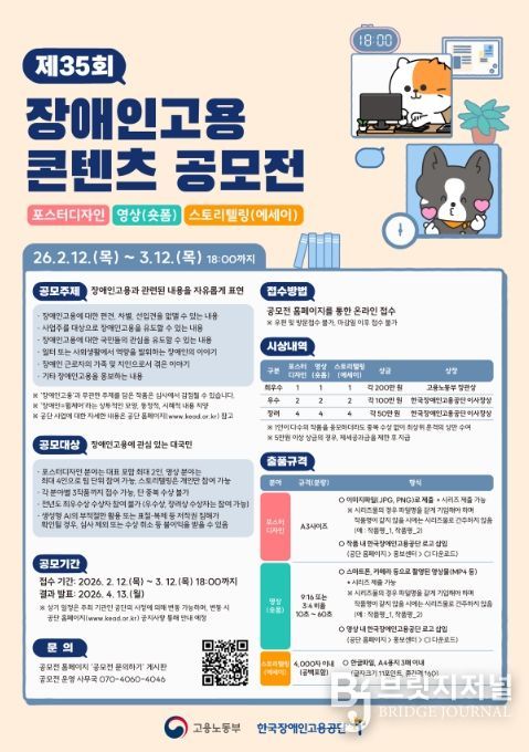 브릿지저널 김경미 기자 | 고용노동부와 한국장애인고용공단이 '2026년 제35회 장애인고용 콘텐츠 공모전'을 개최한다.