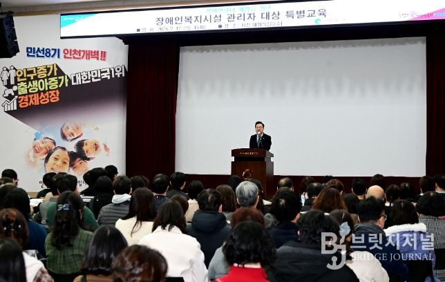 브릿지저널 김경미 기자 | 인천광역시는 2월 12일 시청 대회의실에서 장애인복지시설 관리자 250여 명을 대상으로‘장애인학대 예방’을 위한'장애인복지시설 관리자 대상 특별교육'을 실시했다고 밝혔다.