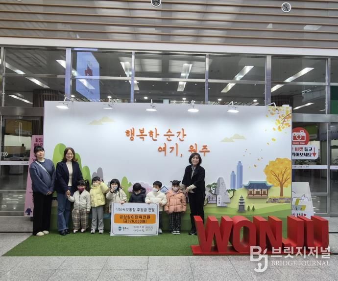 브릿지저널 윤나영 기자 | 원주 아이조아어린어집은 지난 11일 원아들과 함께 자립 아동 지원을 위한 디딤씨앗통장 후원금 32만 6,000원을 원주시에 전달했다.