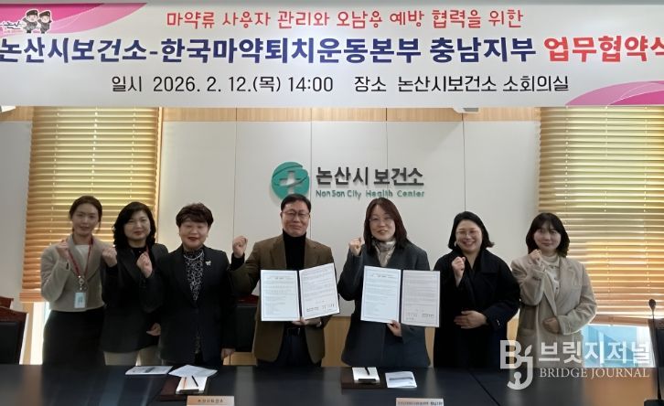 브릿지저널 정보영 기자 | 논산시는 12일 논산시보건소 소회의실에서 한국마약퇴치운동본부 충남지부와 ‘마약류 오남용 예방 및 마약류 사용자·고위험군 연계 관리를 위한 업무협약(MOU)’을 체결했다.