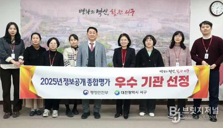 브릿지저널 정보영 기자 | 대전 서구가 행정안전부 주관 2025년 정보공개 종합평가에서 우수 기관으로 선정됐다.