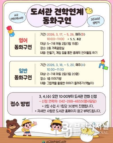 수업은 3월 17일부터 5월 26일까지 매주 화요일과 수요일 총 20회차로 진행되며, 일반 동화구연(2~7세 대상)과 영어 동화구연(5~7세 대상)으로 나눠 운영된다.