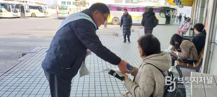 브릿지저널 김경미 기자 | 충북 진천군은 2026년 설 명절을 맞아 지난 10일부터 13일까지 4일간 생거진천 전통시장과 버스터미널, 중앙시장 등 다중이용시설에서 방문객을 대상으로 주소정책 홍보를 실시했다.