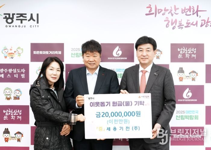 브릿지저널 김경미 기자 | 세용기전㈜ 안승용 대표는 13일 설 명절을 맞아 지역 내 어려운 이웃을 위해 사용해 달라며 성금 2천만 원을 광주시에 기탁했다.