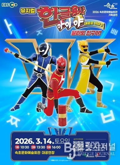 브릿지저널 윤나영 기자 | 속초시는 3월 14일 10시 30분, 13시 30분, 16시 하루 3회 속초문화예술회관에서 뮤지컬‘한글용사 아이야 새로운 이야기-달라도 친구야’를 선보인다.