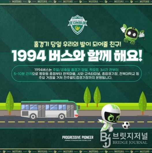 브릿지저널 윤나영 기자 | 20년 만에 전주에서 부활하게 된 K리그 슈퍼컵을 관람하는 축구팬들의 편의를 위해 ‘1994 특별노선’이 운행된다.