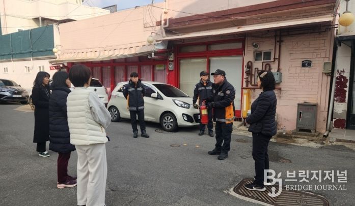 브릿지저널 정보영 기자 | 포항북부소방서 덕산119안전센터 화재진압팀은 지난 11일 대흥동 성매매 집결지 현장시청 빛나길센터 앞에서 지역 주민을 대상으로 소방안전교육을 실시했다.