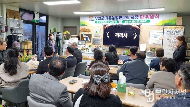 브릿지저널 김경미 기자 | 무안군은 지난 13일 청계면 소재 ‘한국그린케어 치유농장’에서 치유농업연구회 회원 등 20여 명이 참석한 가운데 무안군 치유농업연구회 회장 이·취임식을 개최했다고 밝혔다.
