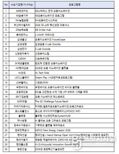 한편, 중기부는 금번 ‘전략과제 해결형’ 외에도, ‘민간 선별·추천형’에서 오픈이노베이션 지원 프로그램 30개를 선정했다. 현대자동차 (제로원), 삼성전자 (C-Lab Outside) 등 오픈이노베이션 역량·실적이 우수한 대기업들이 새롭게 참여했으며, 기업 자체적 오픈이노베이션 프로그램을 통해 선별된 스타트업을 프로그램 운영기업에서 추천시 중기부에서 연계 지원할 예정이다.