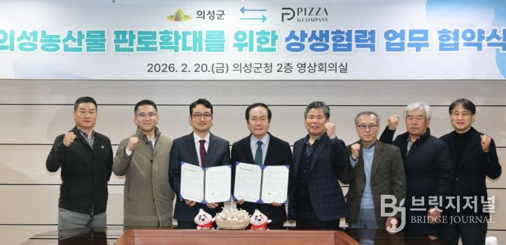 브릿지저널 정보영 기자 | 의성군은 2월 20일 군청 영상회의실에서 ㈜피자앤컴퍼니(대표 한동효)와 ‘의성 농산물 활용 및 상생협력 업무협약(MOU)’을 체결했다.