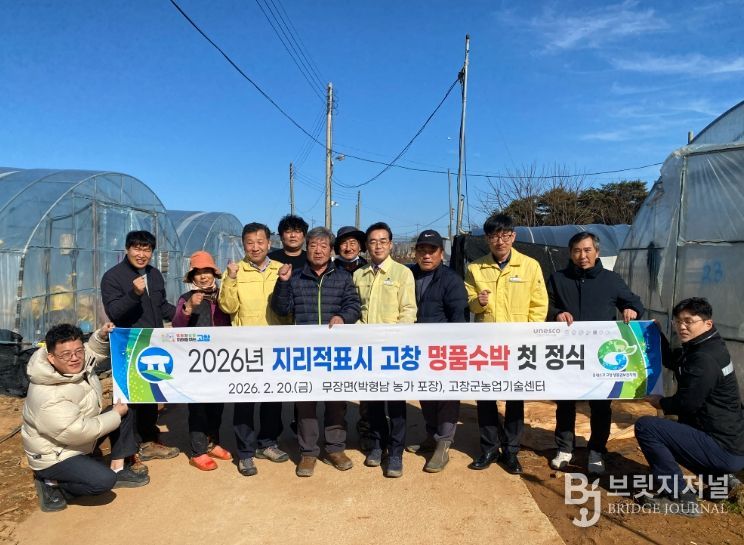 고창군은 지난 20일 무장면 박형남 농가 수박 재배포장에서 관계자와 농업인 등이 참석한 가운데 ‘2026년 지리적표시 고창 명품수박 첫 정식 행사’를 개최했다고 밝혔다.