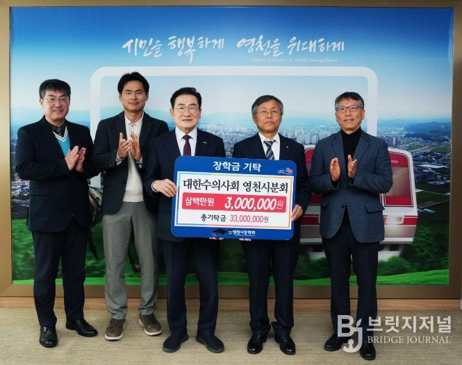 브릿지저널 정보영 기자 | 영천시는 23일 대한수의사회 영천시분회에서 300만원, 박영배 전 금호읍 바르게살기위원회 위원장이 100만원의 장학금을 영천시장학회에 기탁했다고 밝혔다.