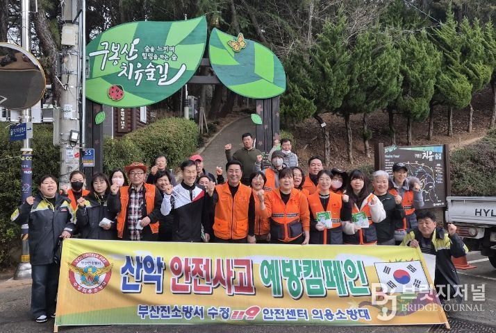 브릿지저널 윤나영 기자 | 부산진소방서 의용소방대 수정지역대(남성총무부장 정정국, 여성대장 최윤경)는 지난 22일 오전 8시부터 구봉산 치유숲길 일원에서 산불 예방 캠페인을 실시했다. 이날 의용소방대 수정지역대 대원들은 산불 예방 수칙이 담긴 홍보 물품과 리플릿을 배부하며 등산객에게 화재 예방의 중요성을 적극적으로 알렸다.