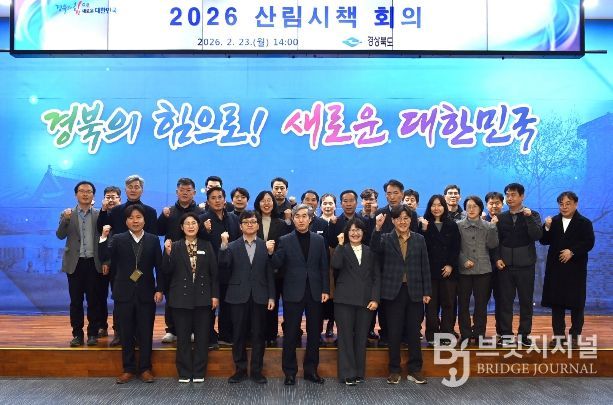 브릿지저널 정보영 기자 | 경상북도는 2026. 2. 23. 도청 화백당에서 22개 시‧군 산림부서장 등 100여 명이 참석한 가운데 ‘2026 산림 시책 회의’를 개최했다.