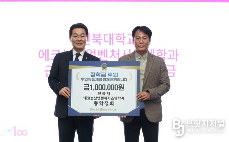 이와 함께 전북대학교 에코농산업벤처시스템학과 총학생회에서도 후배들의 학업 지원과 지역사회 환원에 힘을 보태기 위해 장학금 100만 원을 기탁하며 나눔에 동참했다.