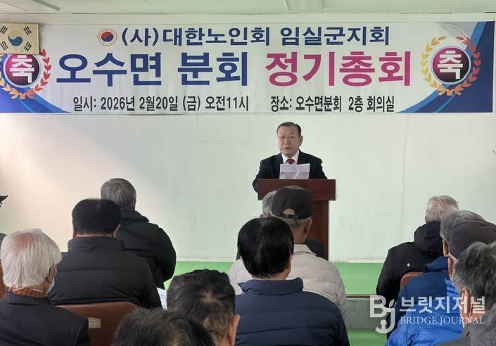 브릿지저널 윤나영 기자 | 임실군 대한노인회 오수면분회(회장 권인석)는 지난 20일 오수면노인회관에서 2026년도 정기총회를 개최했다.
