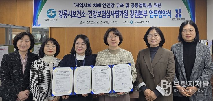 브릿지저널 윤나영 기자 | 강릉시보건소(보건소장 권혁여)는 지난 24일 건강보험심사평가원 강원본부(본부장 정선호)와 지역사회 치매 안전망 구축 및 공동 협력을 위한 업무협약을 체결했다.