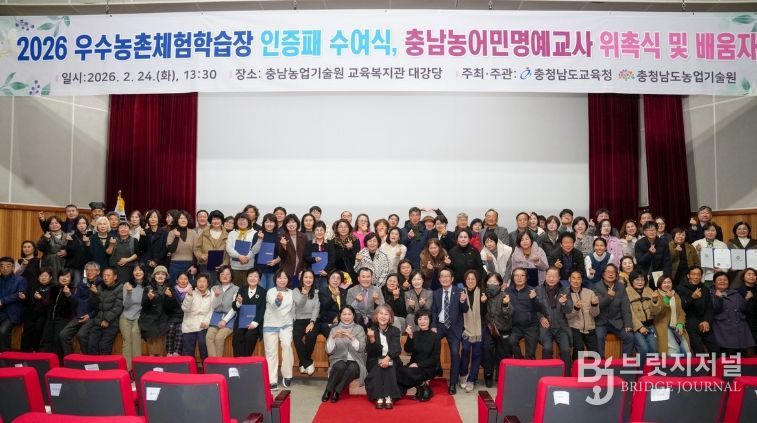 브릿지저널 정보영 기자 | 충남교육청은 24일 충청남도농업기술원(예산)에서 우수 농촌체험학습장 인증패 수여식 및 농어민명예교사 위촉식과 배움자리를 농촌체험학습장 대표, 충남농어민명예교사, 충남농업기술원 관계자 180명이 참석한 가운데 개최했다고 밝혔다.