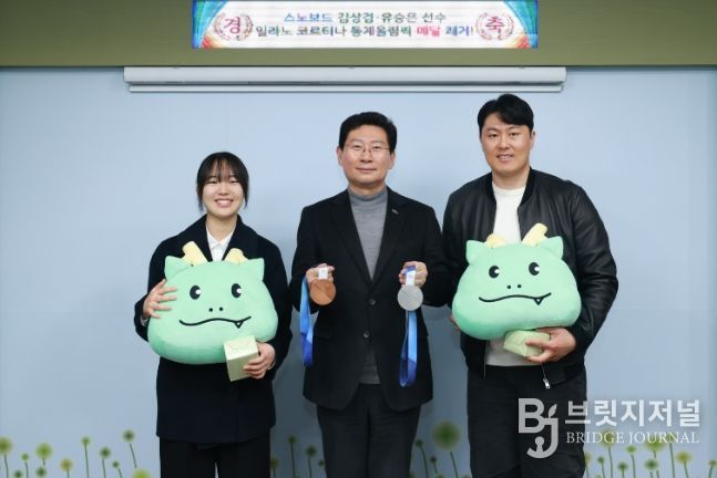 브릿지저널 김경미 기자 | 이상일 용인특례시장은 24일 오후 시장실에서 2026 밀라노·코르티나 동계올림픽에 참가해 메달을 획득한 김상겸 선수·유승은 선수와 소통하는 시간을 가졌다.