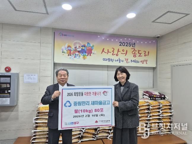 지난 10일, 새마을금고는 10kg의 백미 80포와 성금 100만원을 중림동 주민센터에 기탁했다. 백미는 중림동 내 경로당과 쪽방 주민을 지원하는 ‘한사랑공동체’와 저소득 가정 등에 전달돼 이웃들의 식탁을 든든하게 채웠다. 또한 성금은 복지 사각지대에 놓인 20가구에 각 5만 원씩 지원됐다.