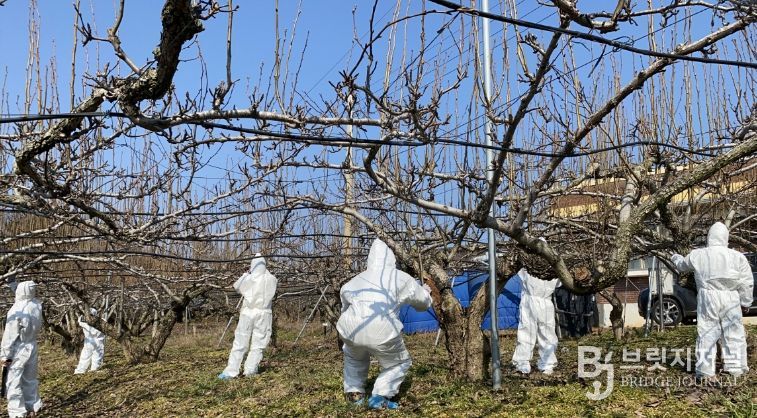과수화상병은 세균에 의해 발생하는 병으로, 사과와 배 등 식물의 잎과 꽃, 가지, 줄기, 과실까지 감염돼 마치 불에 그을린 듯 검게 말라 죽는 증상을 보이며, 법정 전염병으로 의무방제를 실시해야 한다. 효과적인 예방을 위해서는 정해진 시기에 맞춘 단계별 방제가 중요하다.