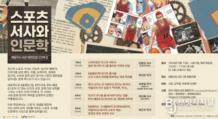 브릿지저널 김경미 기자 | 연수구 해돋이도서관은 인천대학교 인문대학과 함께 2026 상반기 '테마인문 고전특강'을 개최한다.