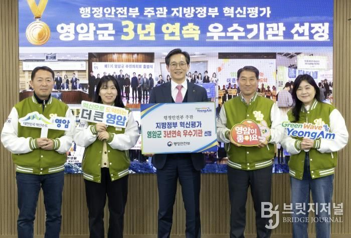 브릿지저널 김경미 기자 | 영암군이 23일 행정안전부의 ‘2025년 지방정부 혁신평가’에서 최고 등급인 우수기관으로 선정돼, 3년 연속 혁신 지자체에 이름을 올렸다.