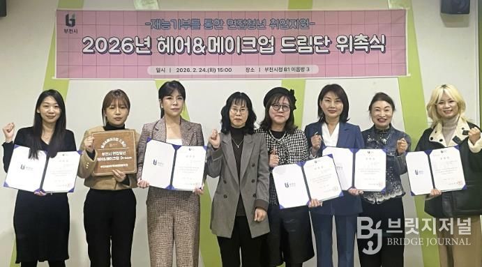 브릿지저널 김경미 기자 | 부천시는 지난 24일 시청에서 ‘2026년 면접청년 헤어메이크업 드림단’ 위촉식을 열고, 청년 취업지원 체계를 강화한다고 밝혔다. 이번 위촉식은 재능기부를 기반으로 민관이 협력해 청년 구직자의 면접 준비를 체계적으로 지원하고, 면접 과정에서 자신의 역량을 충분히 발휘하도록 지원하기 위해 마련됐다.