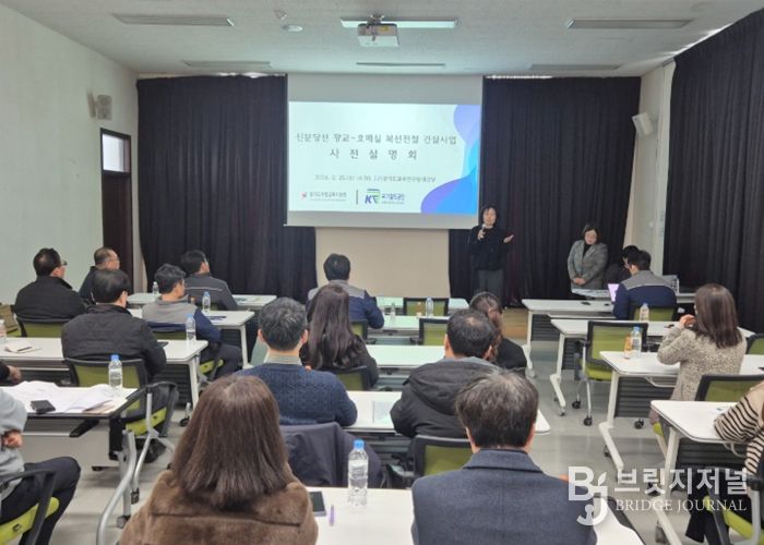 브릿지저널 김경미 기자 | 경기도수원교육지원청은 신분당선 광교–호매실 복선전철 공사 추진에 앞서 2월 25일 국가철도공단과 함께 공사 구간 100m 이내에 위치한 5개 인접학교를 대상으로 사전설명회를 실시했다고 밝혔다.