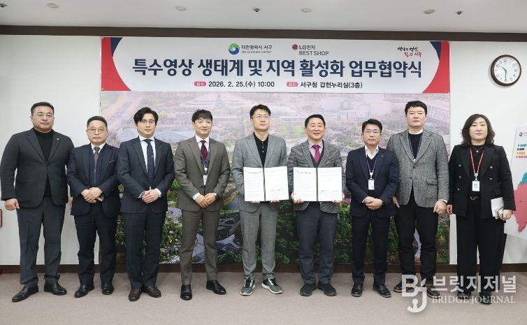 브릿지저널 정보영 기자 | 대전 서구는 25일 구청 갑천누리실에서 LG전자 베스트샵 대전본점과 ‘특수영상 생태계 및 지역 활성화 업무협약(MOU)’을 체결했다.
