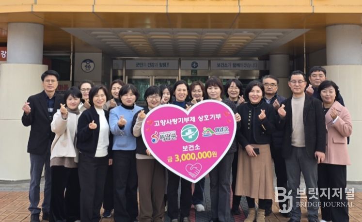 브릿지저널 김경미 기자 | 영암군보건소와 해남군보건소가 25일 해남군보건소에서 ‘고향사랑기부 협약식’을 열고, 상대 지자체의 고향사랑기부 지정기부 항목에 상호기부했다.