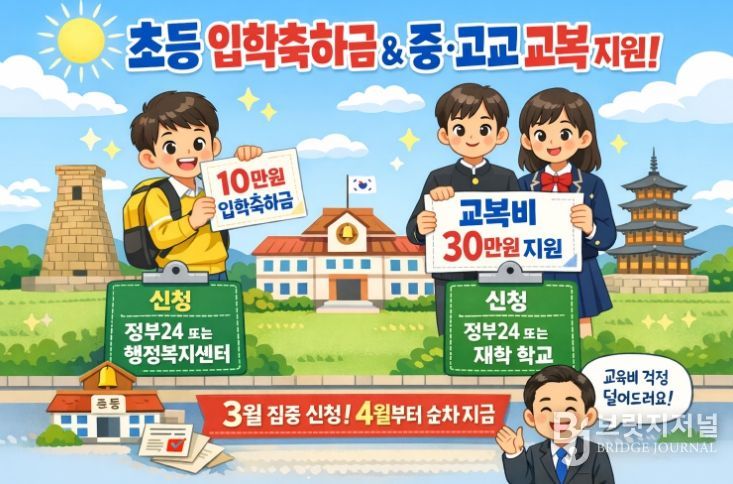 브릿지저널 정보영 기자 | 경주시가 다음 달 3일부터 초등학교 입학축하금과 중‧고등학교 신입생 교복구입비 신청을 받는다.