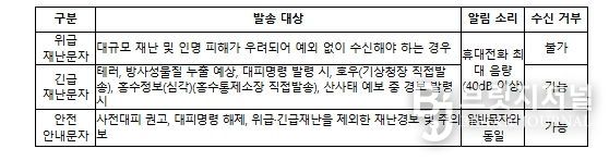 지진·핵경보 등에만 제한적으로 사용되던 ‘위급재난문자’는 지방정부의 판단에 따라 대규모 재난이나 인명 피해가 우려되는 상황에서도 사용할 수 있도록 했다.