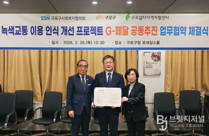 구는 2월 26일 구청 르네상스홀에서 구로구사회복지협의회, 서울구로삶터지역자활센터와 ‘지(G)-페달’ 공동 추진 업무협약을 체결하고 기관 간 협력체계를 구축했다.