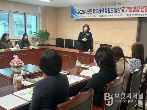 브릿지저널 정보영 기자 | 경상북도청송교육지원청은 26일 오후 3시 청송교육지원청 2층 소회의실에서 관내 영양교사 및 영양사 13명을 대상으로 '2026학년도 학교급식 청렴도 향상 및 기본방향 전달연수'를 실시했다.
