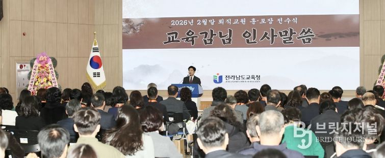 브릿지저널 김경미 기자 | 전라남도교육청은 2월 27일 청사 대회의실에서 2026년 2월말 퇴직교원 훈·포장 전수식을 개최했다.