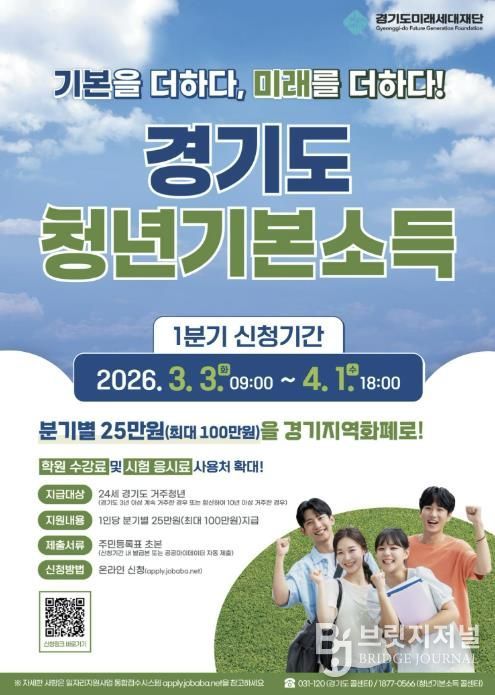 브릿지저널 김경미 기자 | 양주시가 오는 3월 3일부터 4월 1일까지 2026년 청년기본소득 1분기 신청을 받는다.