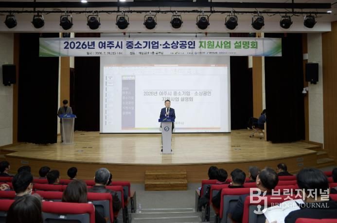 브릿지저널 김경미 기자 | 여주시는 26일 오후 2시 여주시 여성회관 공연장에서 관내 중소기업인과 소상공인 150여 명이 참석한 가운데 ‘2026년 중소기업·소상공인 지원사업 설명회’를 개최했다.