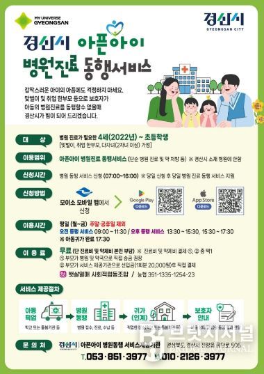 브릿지저널 정보영 기자 | 경산시는 맞벌이 가정과 양육 공백 가정의 돌봄 부담을 덜기 위해 ‘아픈 아이 병원 동행 서비스’를 3월부터 본격 운영한다고 밝혔다.