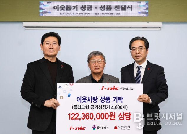 ㈜이오니스는 공기청정기 4600대(1억 2000만 원 상당)를, 브랜드 ‘시원하당’을 보유한 한 업체도 성금 200만 원을 전달하며 나눔에 동참했다.